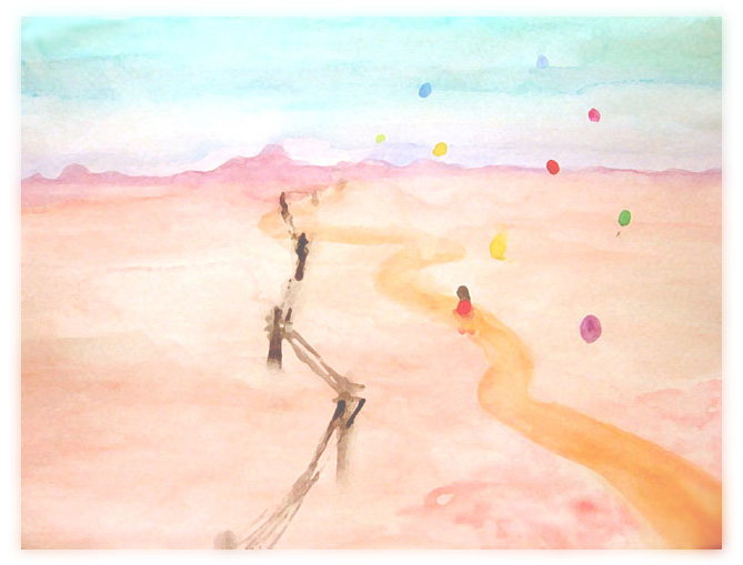 こういう遠く広い景色の中に女の子がぽつんといる絵が好きで、